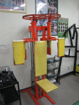 世界パワーリフティング大会仕様のスクワット、ベンチプレス兼用ラック。スクワットからベンチのへの切り替え、瞬時のラック高調整(2センチ刻み)